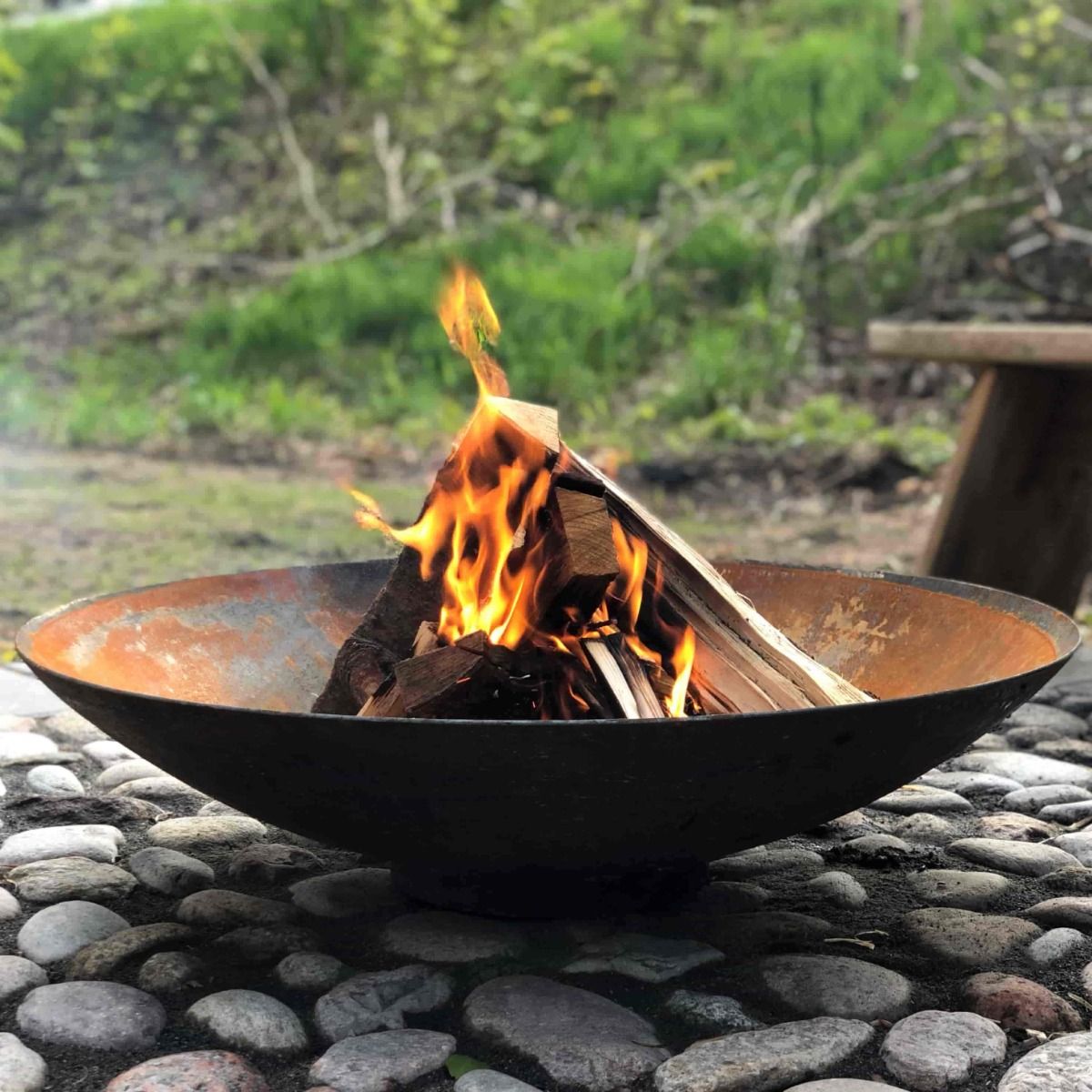 Man kan også lave et bålsted med et bålfad. Hvis bålfadet graves lidt ned i niveau, er den et perfekt underlag til et bål. Det er derudover også visuelt et flot element i ens have.