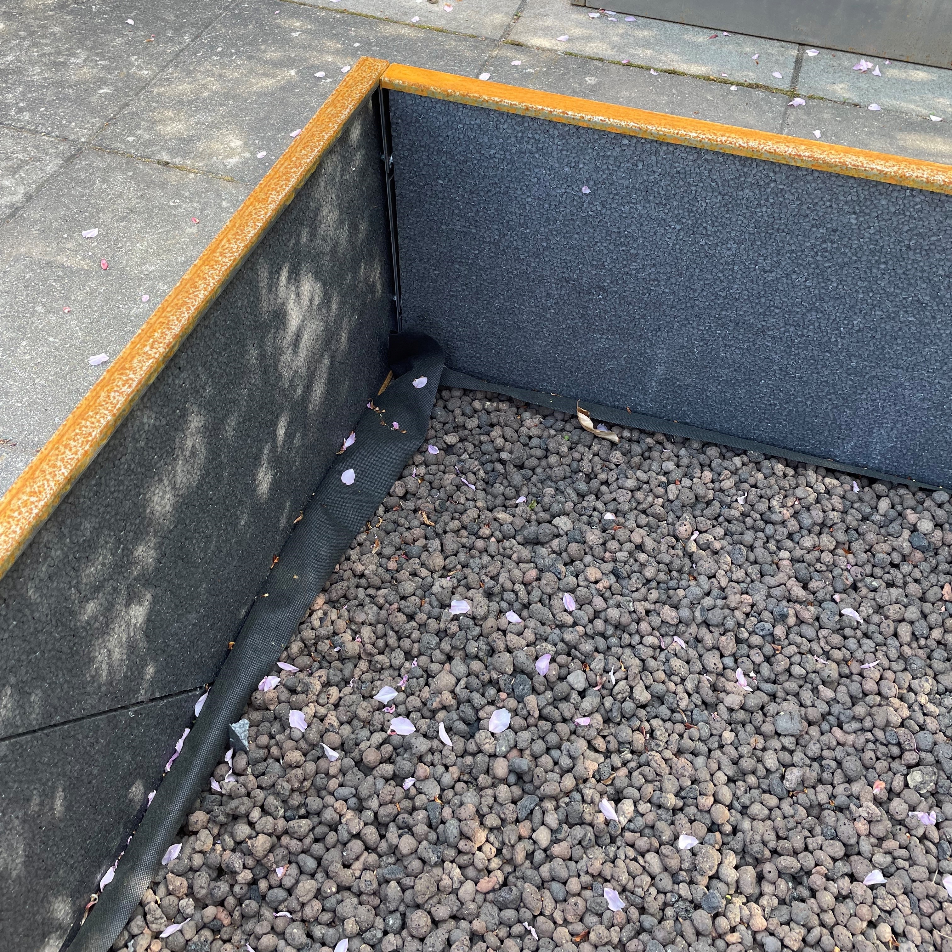 Vores cortenstål højbede og moderne plantekasser er lavet af kvalitetsmaterialer som jern og cortenstål, som afgiver rustfarve over tid. Når de står direkte på fliser, kan rustfarven trænge ned i fliserne og efterlade pletter. Disse pletter kan påvirke det æstetiske udseende af din terrasse eller gangarealer. Rustpletterne kan man fjerne dem med helt almindeligt sandkassesand. Fordel sandet over pletterne og efterlade det over en periode på 4 måneder. I denne periode er det ideelt, hvis det er fugtigt og regnvejr. Vi anbefaler derfor altid vinterperioden.